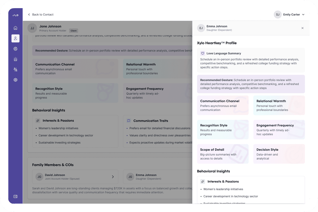 Heartkey automatically surfaces the personal preferences of every client and prospect across six critical categories: